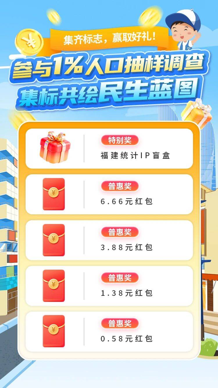 目前 2025年全国1%人口抽样调查 入户登记工作已全面启动 为让大家进一步了解 全国1%人口抽样调查 福建统计带着集标有奖活动来啦 活动时间 2025年11月6日至11月10日 参与方式 关注“福建统计”微信公众号,即可参与活动 活动须知 1.活动时间:2025年11月6日至11月10日。 2.活动期间,用户每日均有3次抽奖机会,收集完5个标志后可参与抽奖。 3.抽奖奖品为红包奖品和实物奖品,中奖用户需填写姓名、手机号码、图形验证码等信息用于领取奖品。 4.红包奖品将于半小时内通过微信发放。如未发放,请联系“福建统计”微信公众号;如已发放,微信红包超过24小时未领取,则不补发;实物奖品将在活动结束后10个工作日内发放,逾期未填写兑奖信息,则视为放弃奖品。 5.提交兑奖信息即为成功兑奖,无效手机号不兑奖;兑奖信息不支持修改。 6.经核实,以非法技术手段操作的获益部分均无效。 7.法律允许范围内,“福建统计”微信公众号拥有对此活动的最终解释权。 活动奖品 注:来源:福建统计,想了解更多资讯请关注! |